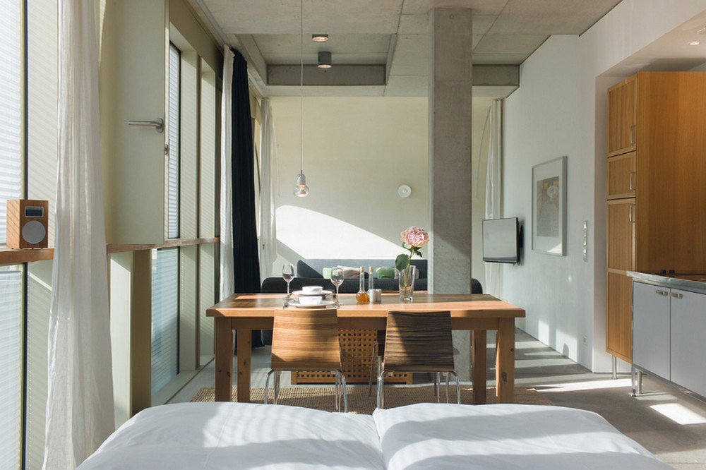 現在該工廈已經告別過去,成為一間設計優雅的公寓旅館。Miniloft 中十四個寬敞的改造單位,座落於兩座相鄰的建築物上。較舊的那一幢於 2002 年重新翻新,內裡共有三個 「Classic」和三個 「Compact」Miniloft ;而在較新的那一幢內則有四個 「Introverted」和四個 「Extroverted」Miniloft。 每一個單位內都有時尚摩登的傢具,設備齊全的廚房以及令你疲勞盡消的高床軟枕 —— 所有能令旅人放鬆並回復精力的元素都一應俱全。你可能不會相信:自從 Britta 和 Matthew 搬進他們的 Miniloft 後,他們沒有回望過去。