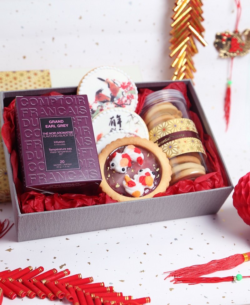 - 禮盒包裝,配上一瓶Phoenix Sweets精心烘焙的手工曲奇(伯爵茶及朱古力口味),以及法國花茶(和茗)或意大利有機蜜糖。