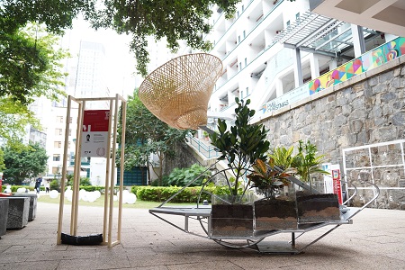 透过重新审视古代中国人的生活技术,Abiotic Equilibrium以新的设计装置呈现当代社会人与自然之间的无形关係,彷如独轮车,借取现场环境元素,自成一种系统与平衡。