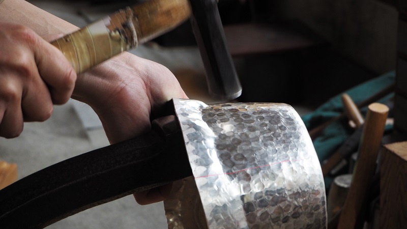 Minori Nishikata, who had been trained as a metal carver in Tsubame City, founded SEIGADO in 1945, shortly after the war. Using traditional techniques such as gold forging and hammering to handcraft bronzeware – also known in Japan and overseas as “hammered copperware” – which means that various types of hammers and metals are used to hammer and compress metals to make products. Because the process of continuous tapping will make the metal hard, after each hardening, an annealing process is required to soften the metal again, and the process is repeated until the desired shape is achieved, requiring extremely demanding production skills and depth of experience. SEIGADO is also skilled at producing silver series and tin products that are the perfect partners with Japanese sake.