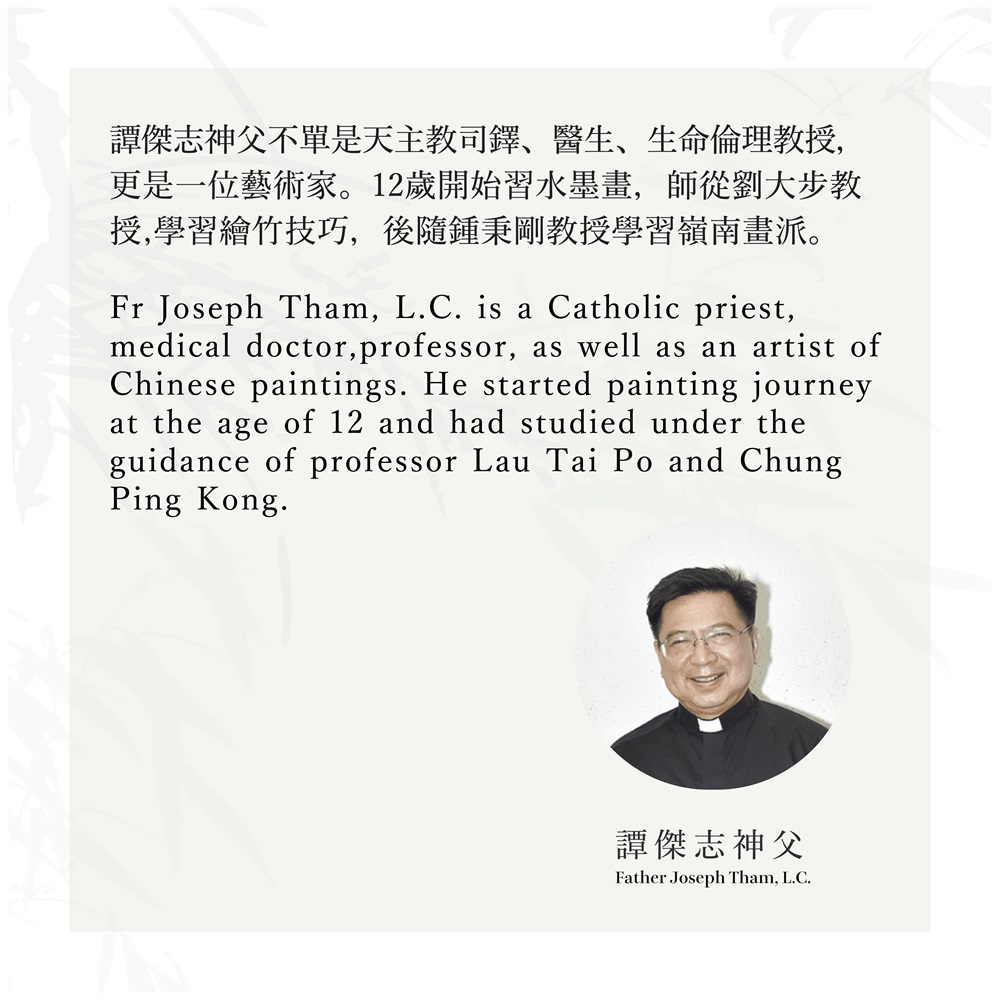 Fr Joseph Tham, L.C. is a Catholic priest, medical doctor,professor, as well as an artist of Chinese paintings. He started painting journey at the age of 12 and had studied under the guidance of professor Lau Tai Po and Chung Ping Kong.