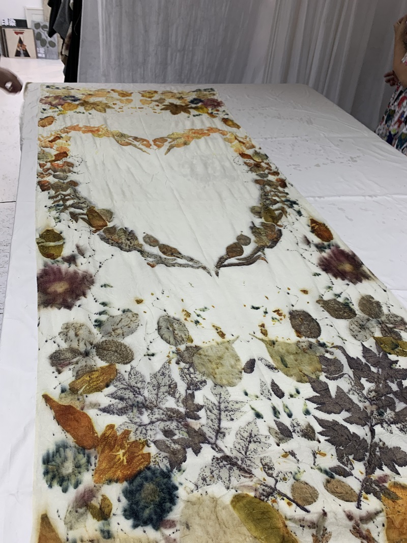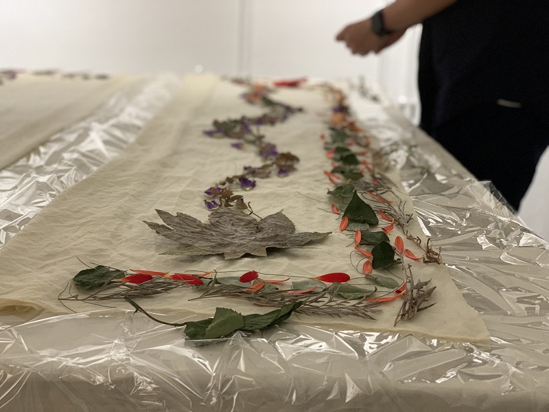 Botanical Printing, also known as Eco-printing, is a common printing technique around Europe, America, and Australia. It is a technique that uses high temperature and pressure to release the natural colouring in plants. The way of arranging the plants on the fabric before steaming, will create different results every time and create beautiful pictures.