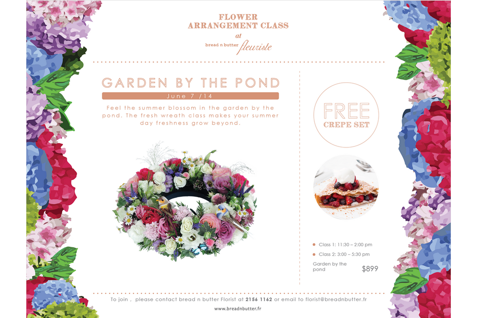 尊享礼遇: 完成插花班后可免费获得crepe set 一份, 及bread n butter $200现金礼券一张