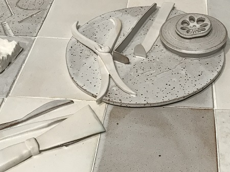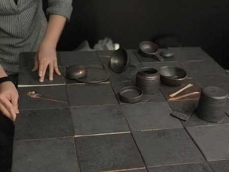 Going by feelings and memories, ceramic artist Yokky Wong replicate with clay the objects on her studio work table. Browsing through the different kinds of ceramic objects here, you can peep into the artist’s day to day life. Yokky’s creative partners, Wordsmith Lee Wai-yee and Designer Kevin Tang subtly express the abstract concepts of “By Feeling and Remembering…” with words and simple imagery on a handmade book named “不棄”.