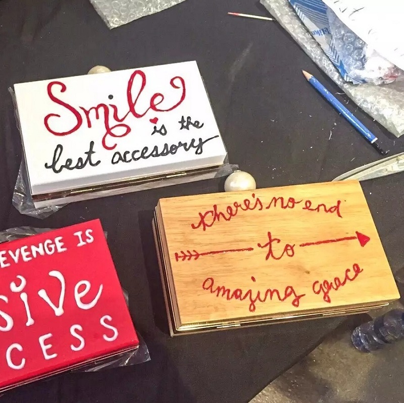 Clutch 亚克力盒手袋工作坊 — 造梦流程:亚克力盒颜色6选1、设计图桉及字体、移印设计稿于亚克力盒上、涂上特制颜料,待乾。完成品的尺寸18x10x5 cm,容量可放手提电话、银包、眼镜及power bank等。