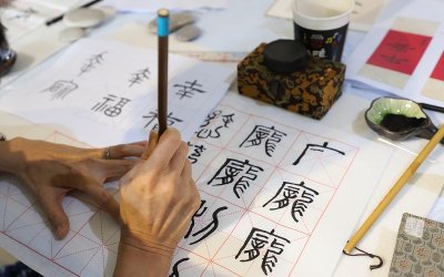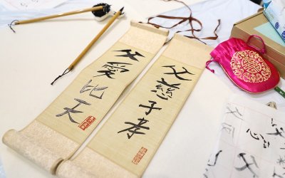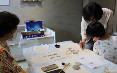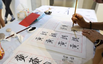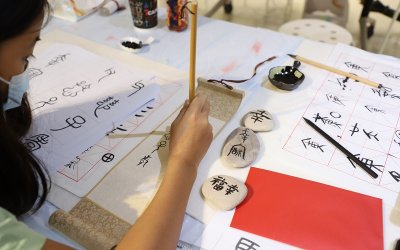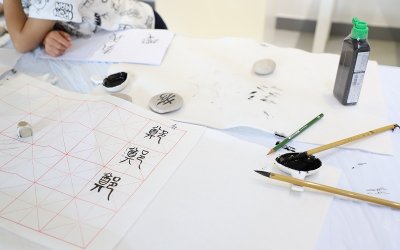 暑假臨近,在導師的指導和啟發下,學生練習中國書法技巧,創作作品,小朋友從工作坊中學習文字的精粹,體驗中國藝術文化。