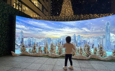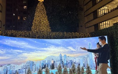 沿著歡樂的林蔭大道,兩旁放滿了美麗的人造聖誕樹,在彩色LED 燈的映照下熠熠生輝。當你到達終點時,可於標誌性的香港背景前拍照留念,週末晚上還會有飄雪效果,給你浪漫溫馨的冬天感覺。