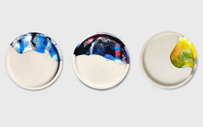 Our workshop includes our unique double-layer coaster and aroma stone. In our workshop, you can expose a different kind of materials, including: concrete, plaster and resin flow arts. This is your special handcraft gift for your friends or own use.