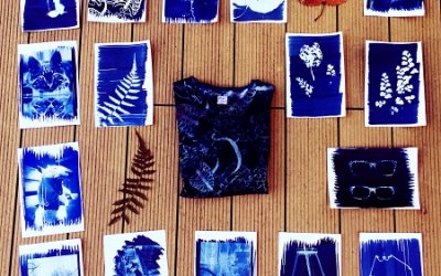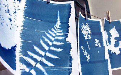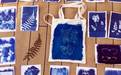 藍晒工作坊是光影和紙張和布料自由創作你喜歡的圖案!
