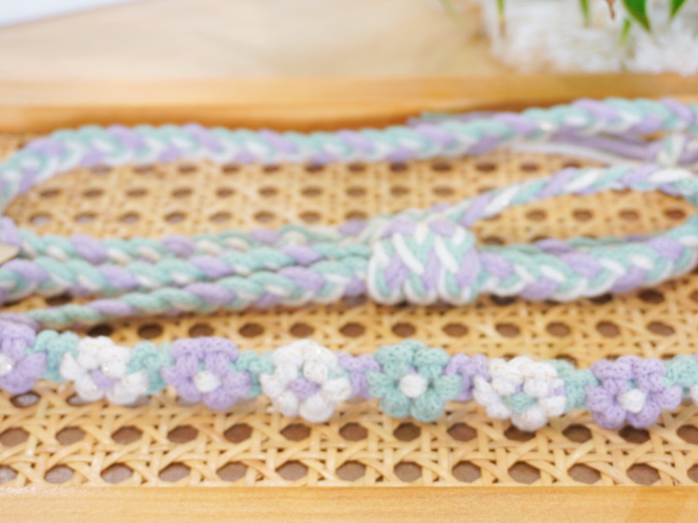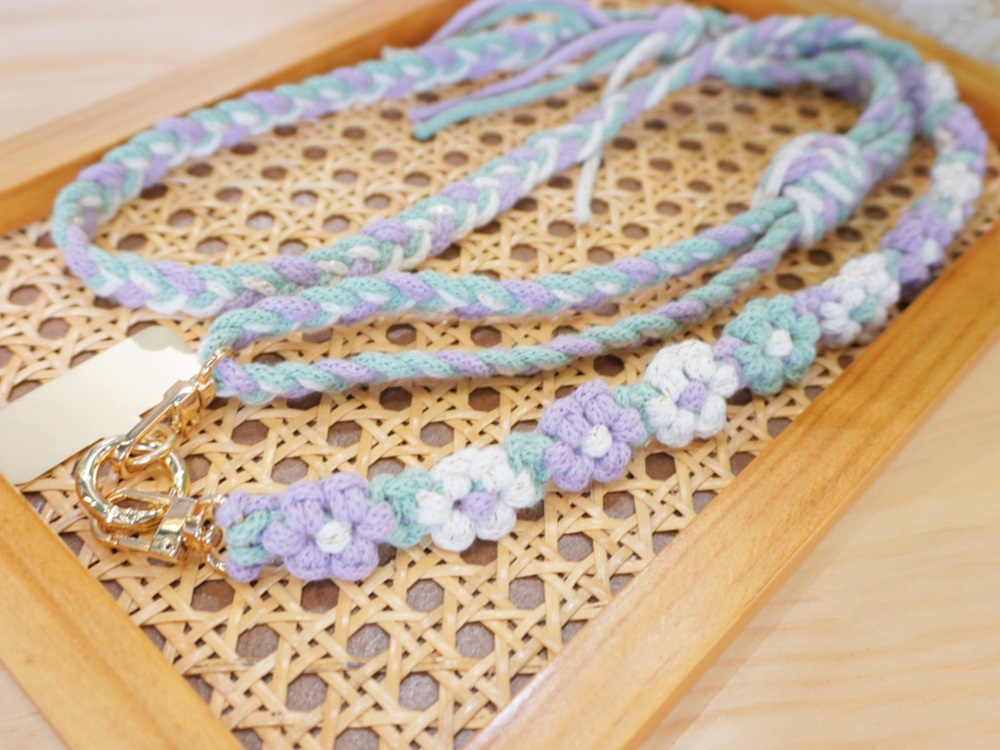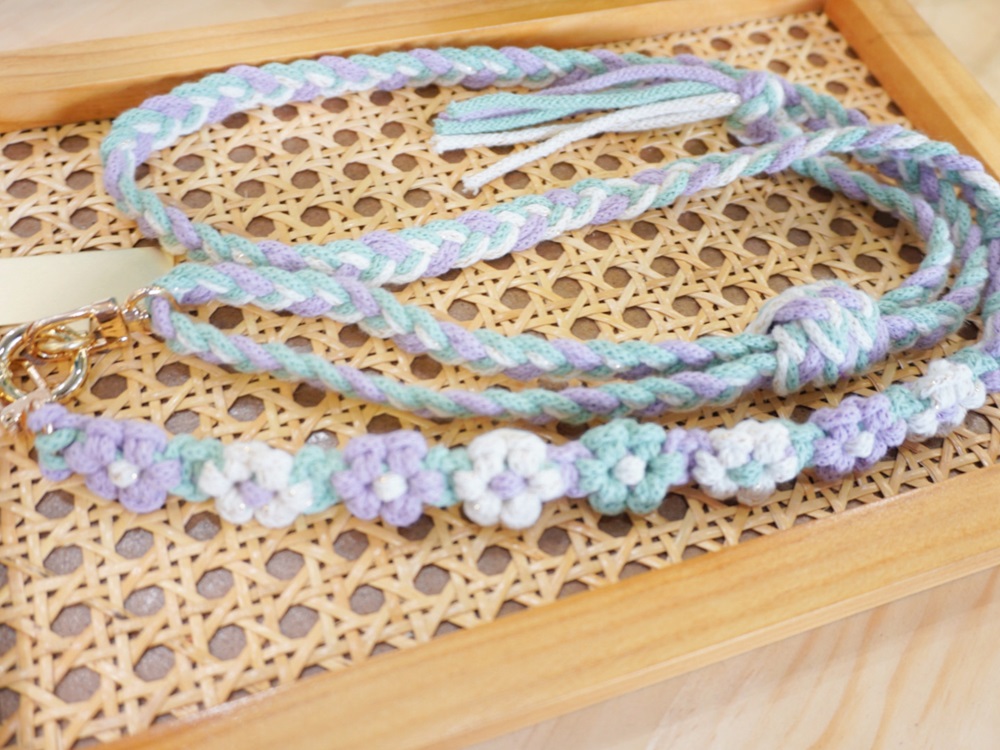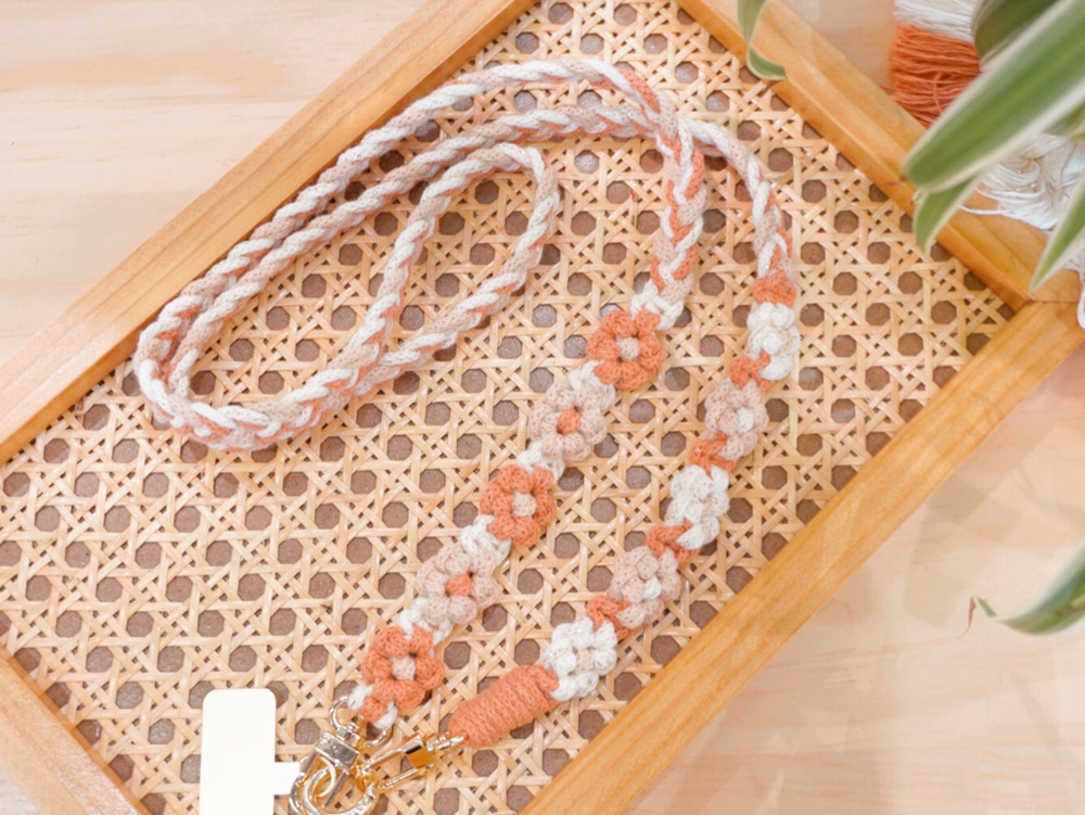 手機繩結合傳統雛菊編織技巧及編辮子方法,讓成品更輕巧,手編過程更輕鬆,適合初學者。作品可選固定或可調校長度,材料為環保繩材,多色可選,完成後每條手機繩都是獨一無二的!