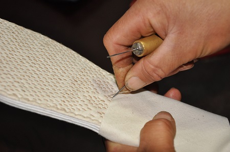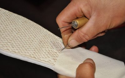 源自山西省,黄麻刺繍被认是非物质文化之一,据说有三千年历史,有记载中国周朝时武士穿的鞋履底部都以此工艺製成。