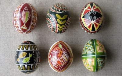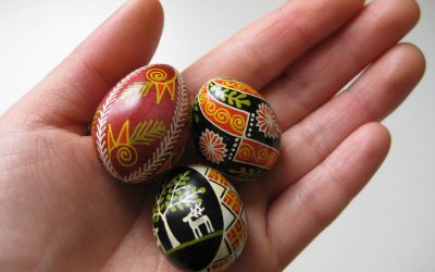 烏克蘭彩蛋是以蠟纈染手法為主,先將蜜蠟放入專用工具內,一面燒熔來畫缐,再沾上染科塗於蛋殼上畫出各種圖案,如動物,花朵,十字架,魚,鳥及幾何學圖案等。在傳統上各圖案有其獨特寓意,也是當地農民為迎接春天到來前在家中手製的工藝品,跟現代所用化學染料不同,古時是以藍苺、洋蔥皮和樹皮等植物作自然染料。