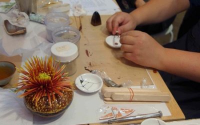 漆是從漆樹皮層採集的汁液,不同於一般化學塗料,漆可抗黴菌、耐強酸及高溫,是珍貴的純天然塗料。採用天然漆製作的漆器色澤溫潤,多以人手裝飾,而「沈金」就是漆藝中的其中一種裝飾技法。而「金繼」又稱為「金繕」,即利用生漆修補陶瓷器。學員可體驗天然漆及純金粉在漆藝上的可塑性。