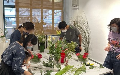 Make your own scent candle and flower arrangment in Hanakubari style which mean without using floral foam or Pin Frog.