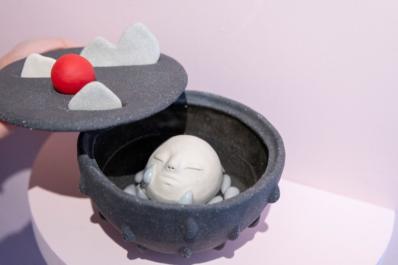 这次雨停创作了一系列新的陶瓷作品,每一件都能让观众亲手触碰,希望藉著互动,一起感受、分担彼此的伤痛。同时香言也为《Dream, unanswered》创作了梦的香气,陪伴观众走进雨停的内心世界。
