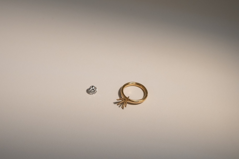 The diamond setting, including the prong mount, will be carried out by our experienced goldsmiths to ensure both precision and durability.