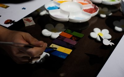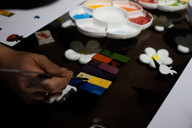 参加者可以使用我们提供的来自画中的花元素,创作出富有当代感的工艺品首饰。