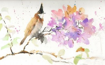 以简单水彩手法让参加者认识基本水彩运用,同时可以在课堂完成一幅水彩花鸟画作。