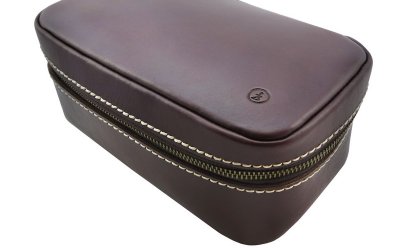 1. Rosie: Toiletry case with full grain cowhide and YKK zipper, inner zipper pocket