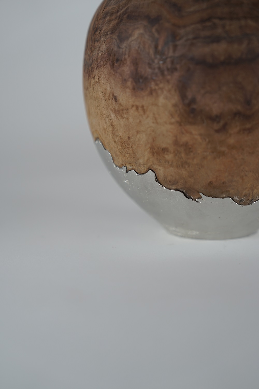 The “fused vase” beautifully combines the strong grain of walnut wood with the soft luster of tin, demonstrating new possibilities that transcend traditional woodworking. Every detail of the works reflects the time and experimentation Fujisaki has spent. Additionally, visitors can enjoy his classic pieces, such as the “Rinka Plate,” which have long been favorites.