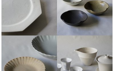 The kiln is located in a beautiful old Japanese house overlooking the peaceful mountains of Nakatsugawa, Gifu Prefecture, Japan. The techniques used are Tatara-zukuri and Tama-zukuri in which clay slab is pressed against a plaster mold. The work has antique-like feel with the use of aged white, the penetrating, and metallic-like texture, and is unadorned and modern, while still leaving traces of human touch and the simplicity of the design for daily life.