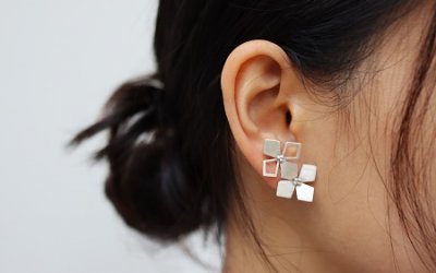Geometric patterns are precise mathematical calculations, while nature is endlessly changing. Imitating natural plants with geometric forms, through basic silversmith techniques such as sawing, soldering and polishing, you could also create a unique pair of 925 silver geometrical flowers earrings.