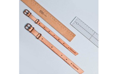 这是一个真皮手工制作的手带并刻上厘米的刻度可作间尺使用。它有两种阔度及6-7种颜色可供选择, 适合情侣自由配搭。