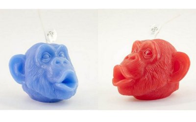它们是猴子造型的香味蜡烛,有蓝色和红色可配成一对。当你把他们面对面摆放时就像在接吻一像。