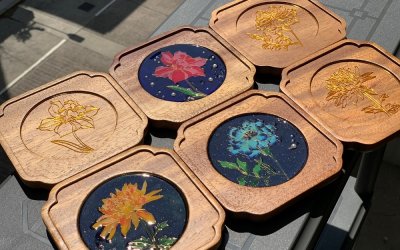 - Participants will take home their finished coaster (walnut based) at the end of the class
