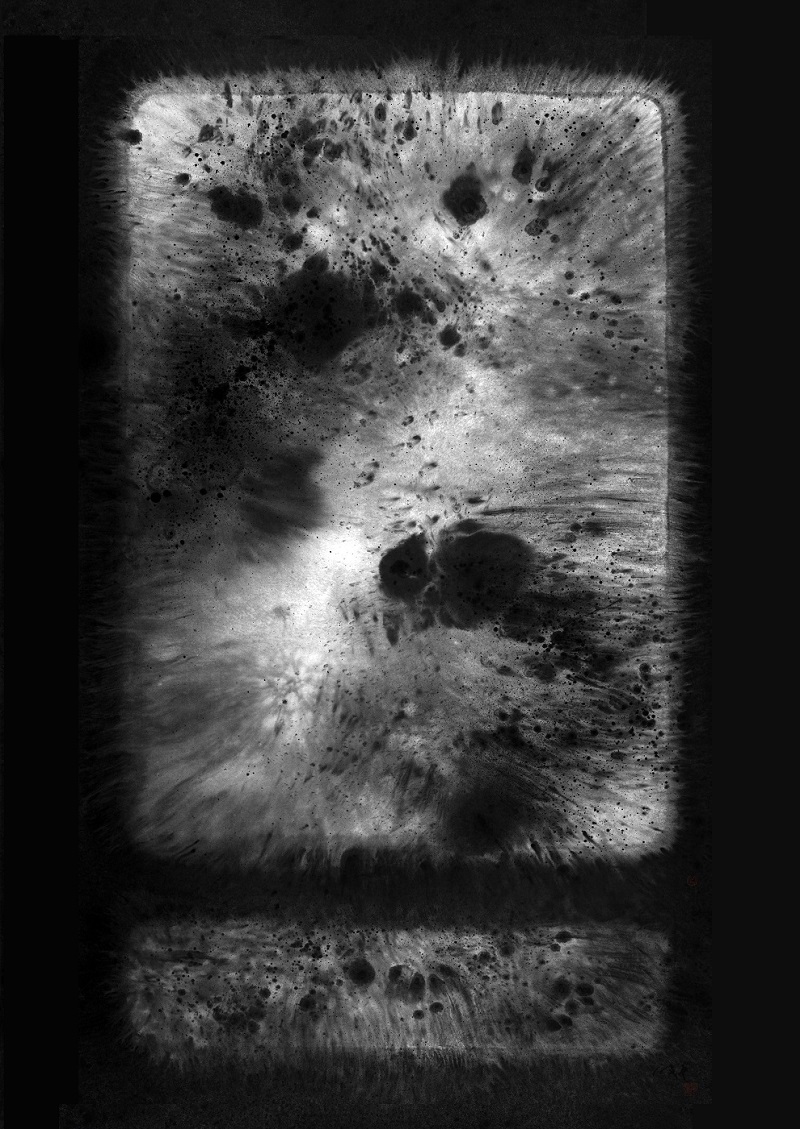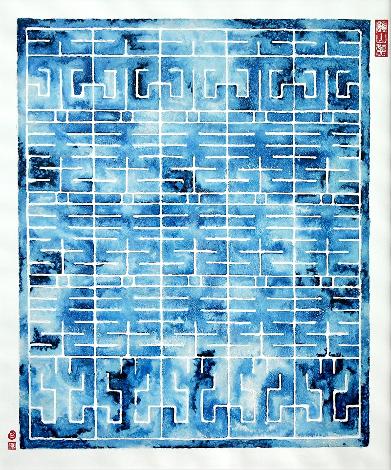 Internationally acclaimed painter, calligrapher, photographer, digital artist and designer, Lampo Leong’s (b. 1961) dynamic energetic Chinese ink paintings feature geometric structures painted with classical ink brushwork. In his Emanation and Supernova series, Leong introduces the viewer to the extraordinary process of creation in the universe, the birth of stars and the energies radiating from planets. Arrays of ink splashes where water and ink collide and intertwine, the layering of intersecting dots and lines give his works a strong sense of movement and three-dimensionality.