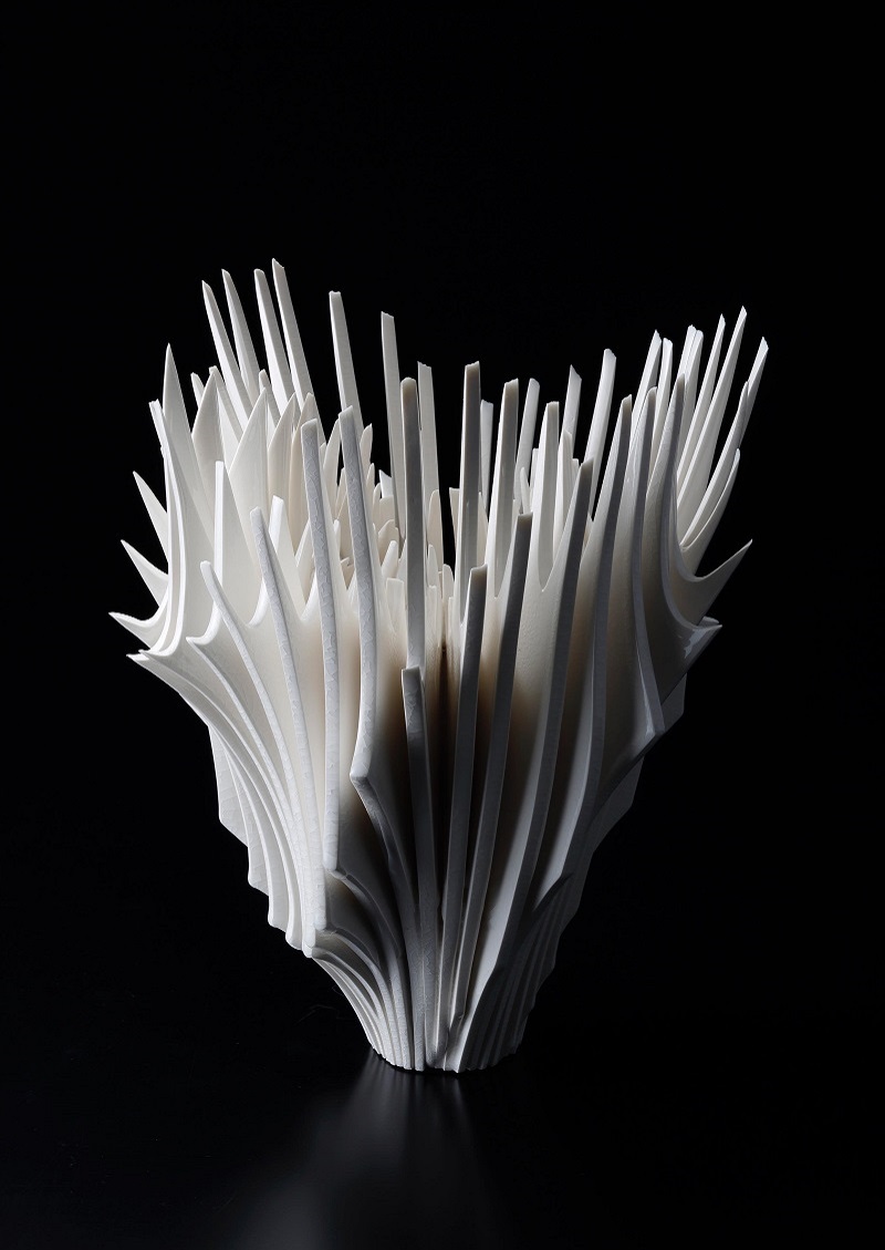Japanese architect turned ceramicist Yuki Nara (b. 1989) explores space and boundaries. Using architecture as a reference, he creates his otherworldly sculptural ceramics that move and stretch, pieces that have strong distinctive shapes and yet can look fragile and delicate at the same time, with movement connecting interior with exterior.