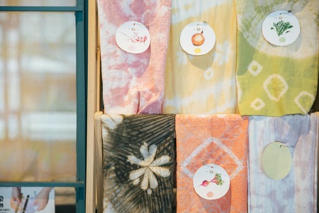 天然剩食染色,剩馀食材来自香港本地食品生产商或供应商,所有素材收集后均会经过分类再消毒处理。