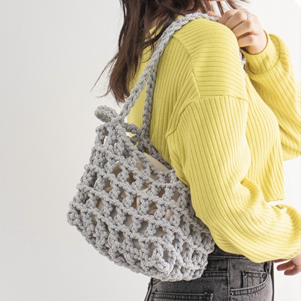 這個工作坊為你們預備了來自韓國線材 – Jemilli,清爽質料編織而成的線材,韌度更高,令袋身更加堅挺!縷空的網格圖案令袋的容量更大;配合附送的內袋,可以帶齊你的隨身物出街。