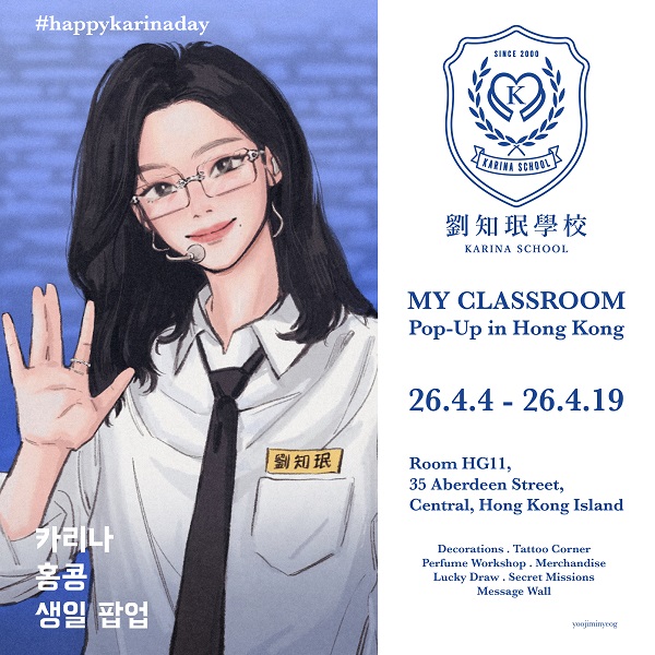 為了慶祝 aespa 成員 Karina 的生日,yoojiminyeog(Karina 香港粉絲專頁)特別在香港舉辦 KARINA SCHOOL – MY CLASSROOM 主題快閃活動,並與超過十位插畫師及攝影師合作。希望大家能一起參與 #HappyKarinaDay 的生日慶祝,在今年留下屬於 Karina 的美好回憶。