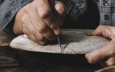 金继是来自日本的传统工艺,将损坏的器物重新黏合,并以金或银来把损坏的部分突显出来,从中学习不完美的美学,令修补后的器物更题珍贵。