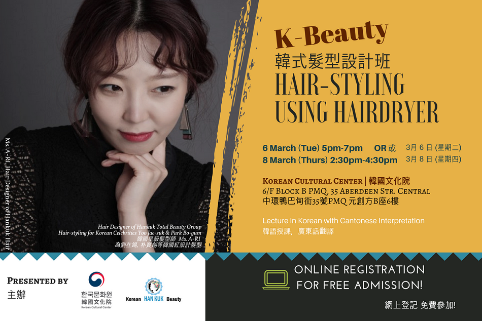 您將有機會跟為劉在錫、朴寶劍等韓國紅星設計髮型的星級韓國髮型師上課,學習如何運用風筒設計最新最潮髮型,網上登記,免費參加,立即報名!