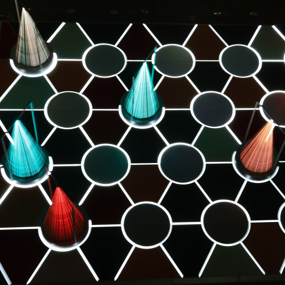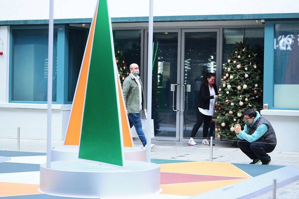 社交距離已成為生活新常態,我們儼如棋子般,保持距離、步步為營。以往總以為,相聚相擁才是親密和在乎的表現,可經過這一年,社交符號儼然已改變:相離因出自關愛,相聚則潛含傷害。展覽裝置將這種新型的社交概念,轉化成「恪守著距離」的彩色幾何圖案。既然聖誕是個分享愛的節日,我們就用距離感來慶祝。