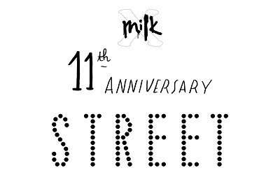 為慶祝十一周年紀念,《MILK X》特意聯同日本知名街拍雜誌《STREET》合作舉辦期間限定店,推出十一款,合共生產五十件的限量T-SHIRT,活動同時會展出《MILK X》多年來於時裝周攝下的SNAPSHOT,希望與入場者分享周年喜悅的同時,能夠與時裝愛好者回顧這些年間時尚街頭文化的演變。