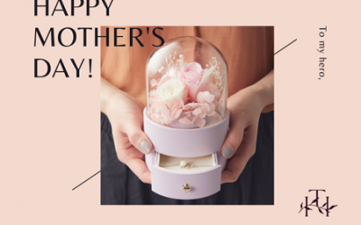 珠宝盒顶层是代表永恆的永生花装饰配孤形玻璃盖,以永不凋谢的花艺技术,保存着最盛放美丽的玫瑰,更代表着永恆的爱永生不灭,至诚表达出永续不断的讯息,寓意祝贺母亲健康长寿,而下层可放置手链或戒指等首饰,既精緻又实用,具高贵优雅的夜空蓝色与浪漫迷人的粉红色选择,更显珍 · 瑰。