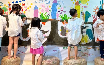 透過繪本來啟發想像力,引導小朋友在大畫布上自由表達自己的構思!