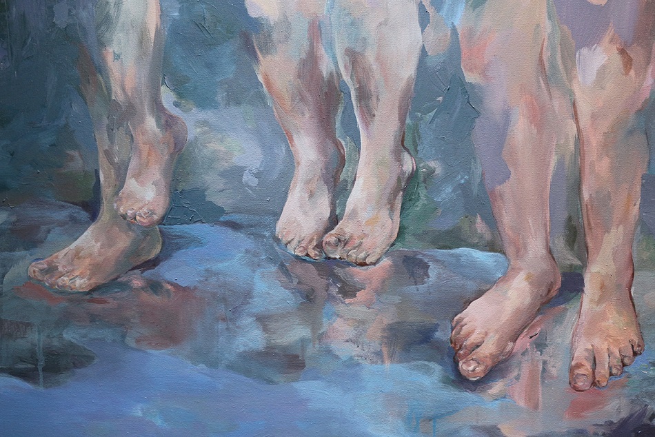 繪畫涉及藝術家的童年,集中在女性身體通過例如腿的下部。安裝藝術,是用水泥在木材上。