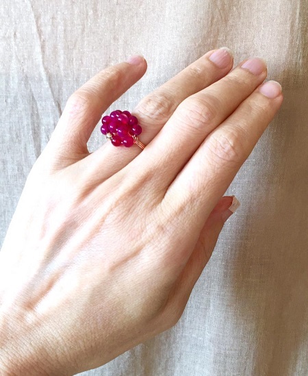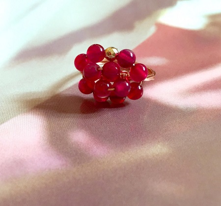 Let’s make a volumy natural stone “Bubble” ring matching any occasion and outfit for summer. Simply choose one favorite colour or mix several stones together, you can create very special original ring. Combination with three different base colour makes the ring more unique, one of the kind.