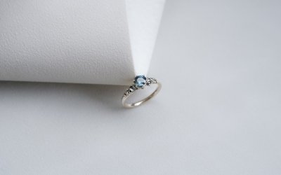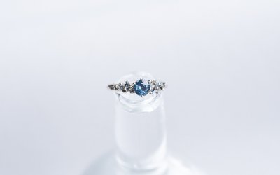 以海蓝绿色蓝宝石作主石,搭配蓝碎蓝宝石及黑白钻石,海洋星光戒指赋予人一种恬静的优雅;如海洋般迷人的魅力!