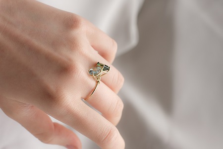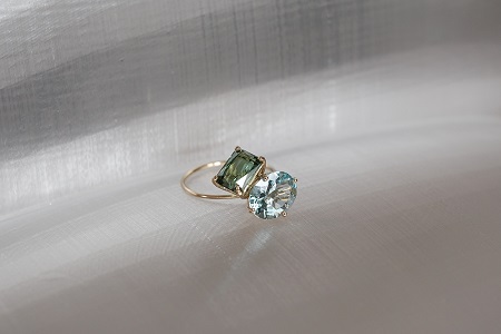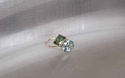 NEW COLLECTION – PIROUETTE www.obellery.com/ring/aquremarine-green-tourmaline-pirouette-ring-by-belinda-chang