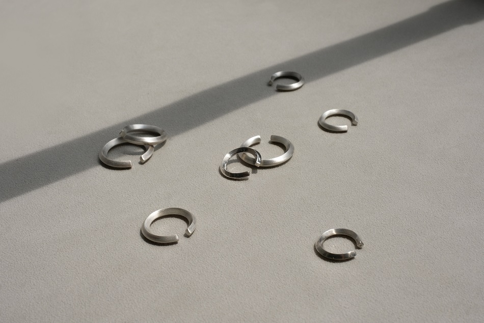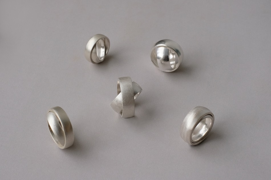 Belinda Chang設計的Dialogue Ring外表流暢優雅極具現代美學,雖然看似簡約卻絕不平凡;巧妙地將兩個圓環緊密扣合卻又能自由地轉動,彷似一件可穿戴的藝術品,將”less is more”的概念發揮極致。