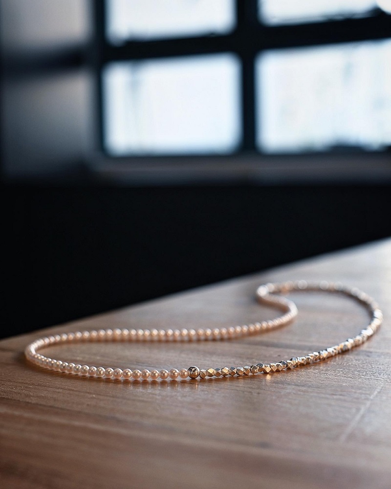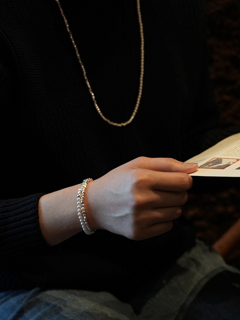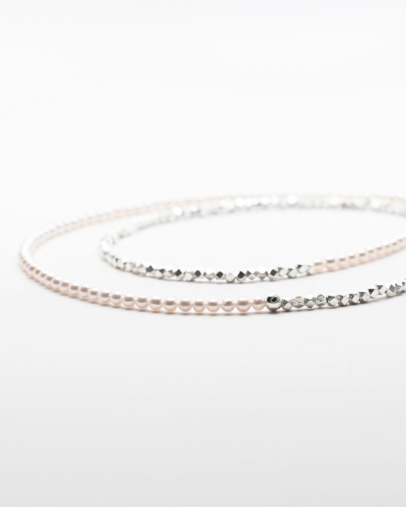 ORIENTSENSES 新作 |日本 Akoya 珍珠 x 刻面纯银珠手鍊和项鍊28″。 简约的无扣设计,令穿戴舒适而时尚。 我们特别挑选了来自日本罕有而优质的Akoya珍珠,每一颗都拥有高度光泽和粉红色的泛光,而且相当圆润。仅限量发售。 每条项鍊都附有日本认可的宝石实验室颁发的宝石鑑定证书。