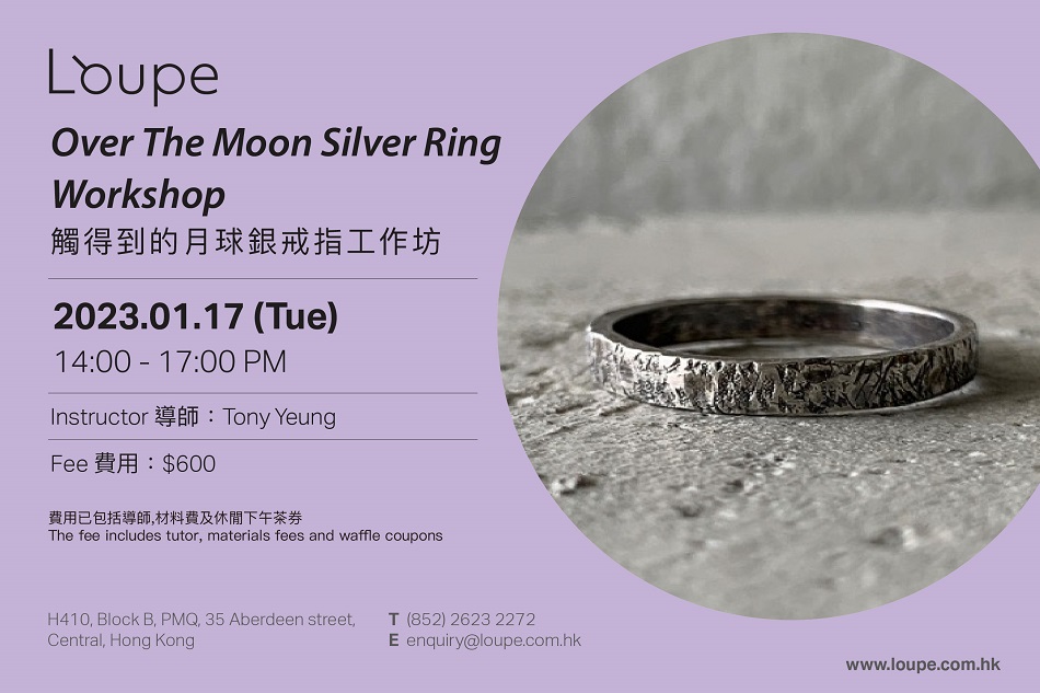 01/14/2023 14:00 01/17/2023 17:00 Asia/Hong_Kong Over The Moon Silver Ring Workshop DATE: 14 January 2023 (Saturday) 17 January 2023 (Tuesday)