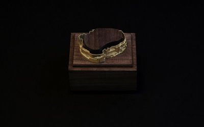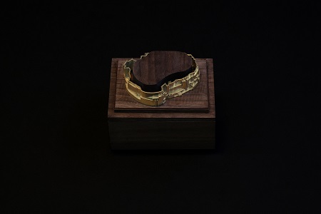 黃金代表愛情的堅貞——傳統中式婚禮中送贈婚嫁金器代表長輩對新人的祝福。以不朽的黃金鎖定時間,由接近二百年的海岸線濃縮而成的手鈪,在手工與電子機械之間、傳統與現代之間,將城市發展的記錄與工匠的手藝轉化成無限祝福與傳承。