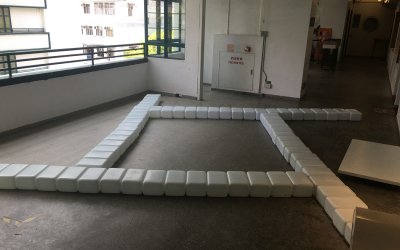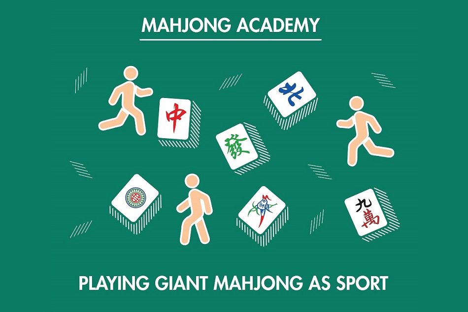 Playing a set of A4 size giant mahjong – not only a good mental and social game but also a good physical exercise.