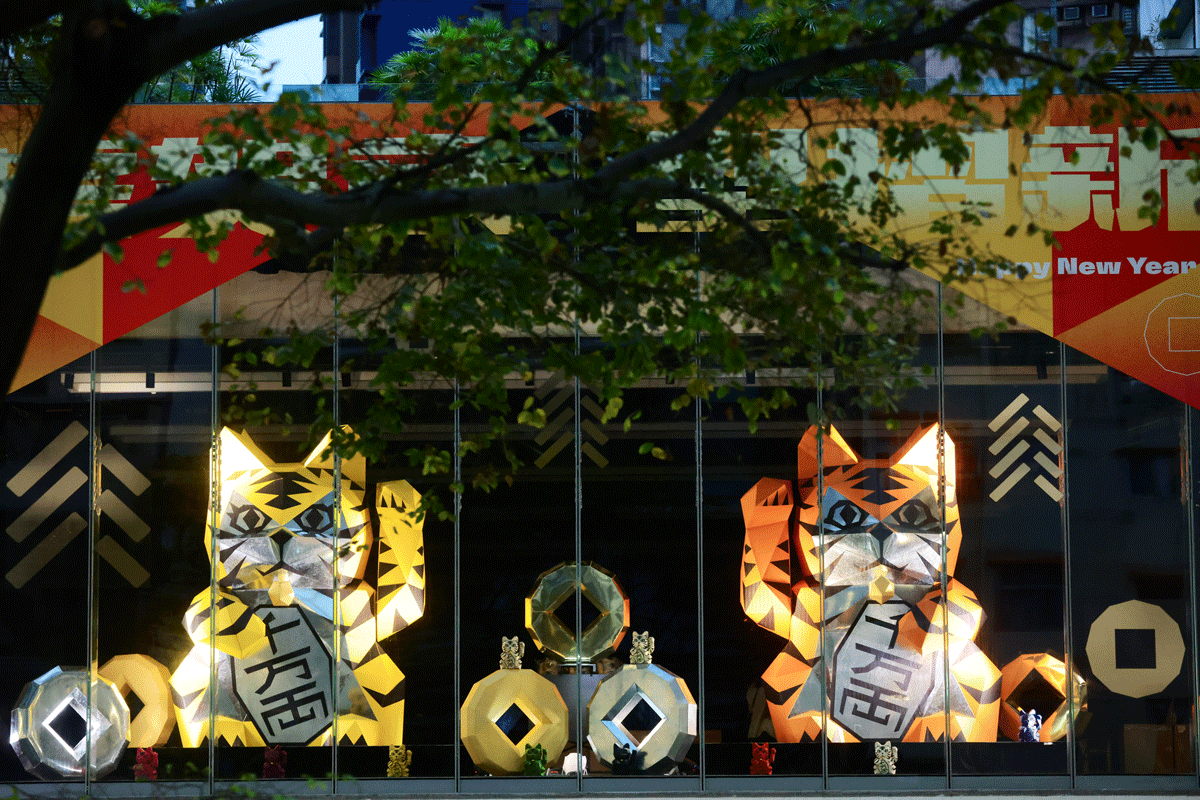 虎虎生威新一年,雖然仍要保持防疫最佳距離,但還是讓福虎繼續「做好呢份工」,隔著玻璃向大家揮手拜年!PMQ元創方聯同本地設計團隊Stickyline,創新地結合摺紙技藝和白鐵工藝,打造兩隻如貓是虎的大型新年裝置,與你共賀玩味佳節。